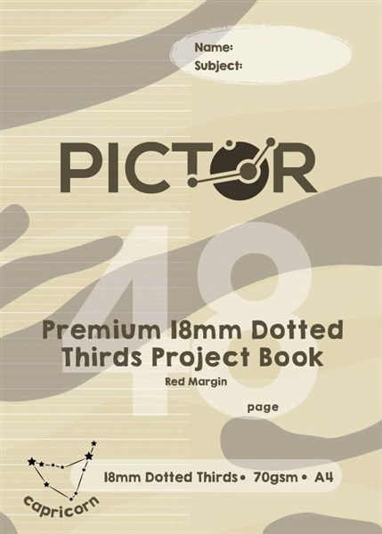PICTOR PREMIUM A4 48 PAGE PROJECT BOOK 18MM PLAIN/DOTTED THIRDS 70GSM CAPRICORN