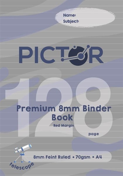 PICTOR PREMIUM A4 128 PAGE BINDER BOOK 8MM RULED 70GSM TELESCOPE