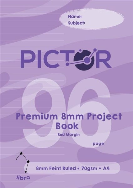 PICTOR PREMIUM A4 96 PAGE PROJECT BOOK 8MM PLAIN/RULED 70GSM LIBRA