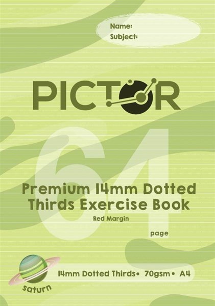 PICTOR PREMIUM EXERCISE BOOK DOTTED THIRDS 14MM 70GSM 64 PAGE A4 SATURN