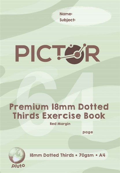 PICTOR PREMIUM EXERCISE BOOK DOTTED THIRDS 18MM 70GSM 64 PAGE A4 PLUTO