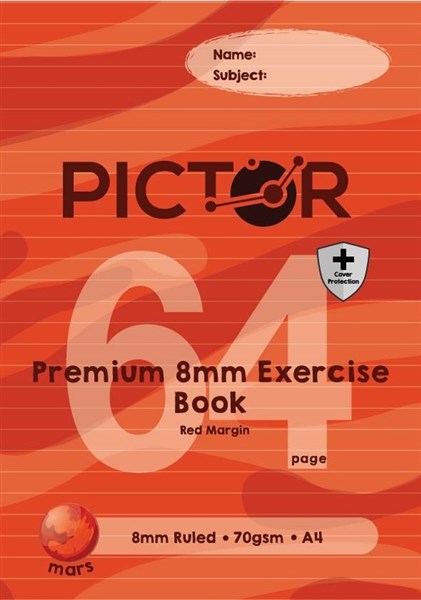 PICTOR PREMIUM PRO A4 64 PAGE PP EXERCISE BOOK A4 STAPLED RULED 8MM 70GSM MARS