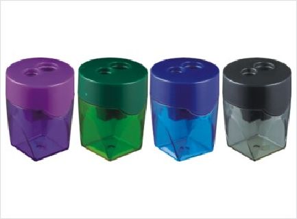 SPECIFICATIONS - Type: Pencil sharpener - Material: Plastic - Canister: Yes - Holes: 2 - Size: 40(w) x 40(d) x 5025(h)mm - Colour: Assorted - Please Note: Colour picked at random at point of sale