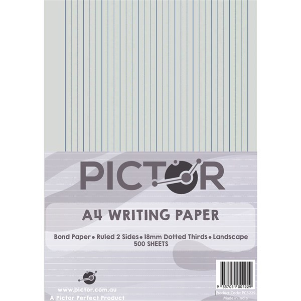 PICTOR WRITING PAPER A4 18mm DOTTED THIRDS LANDSCAPE 500 SHEETS