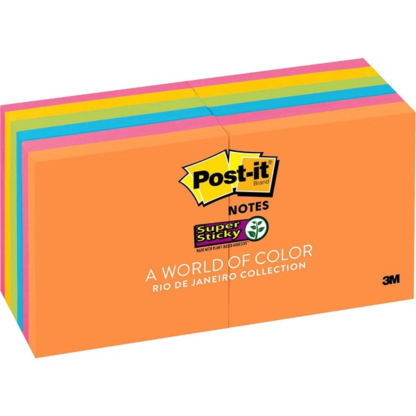 POST-IT 654-12SSAU SUPER STICKY NOTES 76 X 76MM ENERGY BOOST PACK 12