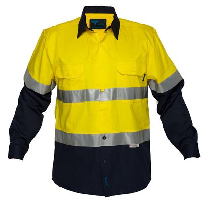 High visibility two tone lightweight long sleeve shirt with tape - 100% Cotton fabric for added comfort and breathability