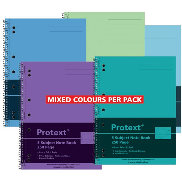 PROTEXT 5-SUBJECT BINDER NOTE BOOK 60GSM 250 PAGE 295 X 223MM ASSORTED