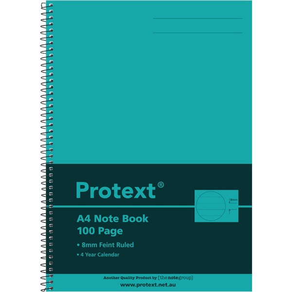 PROTEXT NOTE BOOK 8MM FEINT RULED 55GSM 100 PAGE A4 AQUA