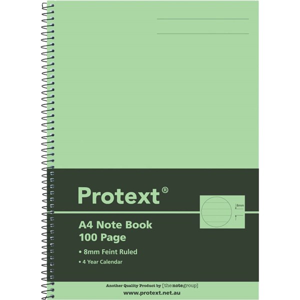 PROTEXT NOTE BOOK 8MM FEINT RULED 55GSM 100 PAGE A4 LIME