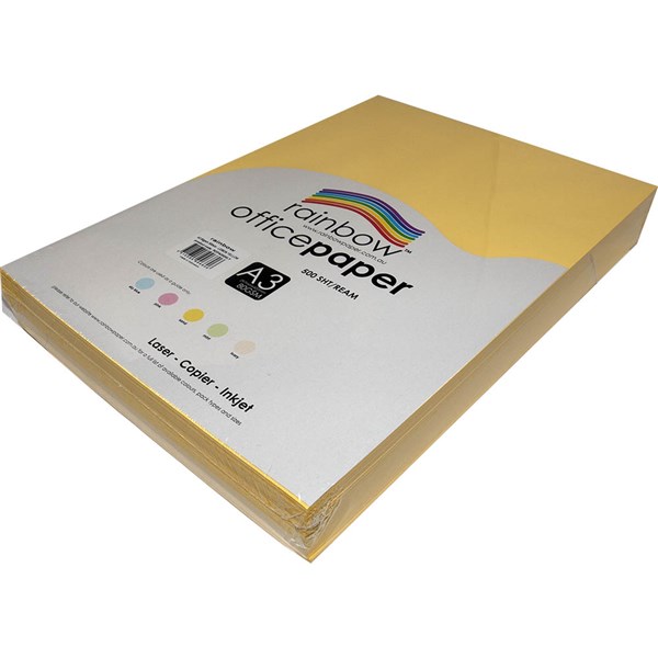 RAINBOW COLOURED A3 COPY PAPER 80GSM 500 SHEETS LEMON YELLOW