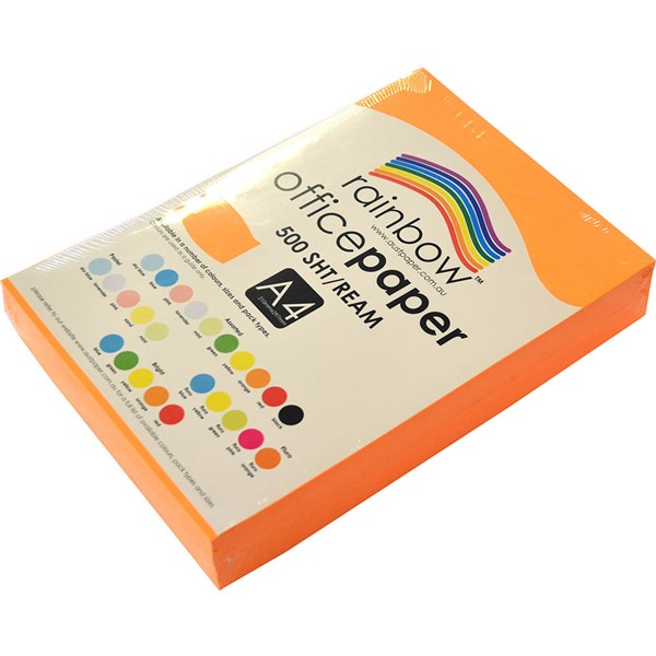 RAINBOW COLOURED A4 COPY PAPER 75GSM 500 SHEETS FLURO ORANGE