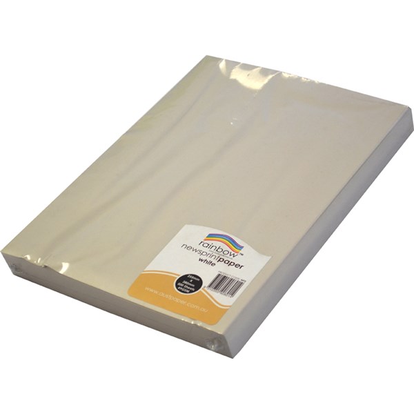 RAINBOW NEWSPRINT PAPER 49GSM 255 X 380MM WHITE 500 SHEETS