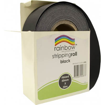 RAINBOW STRIPPING ROLL RIBBED 50MM X 30M BLACK