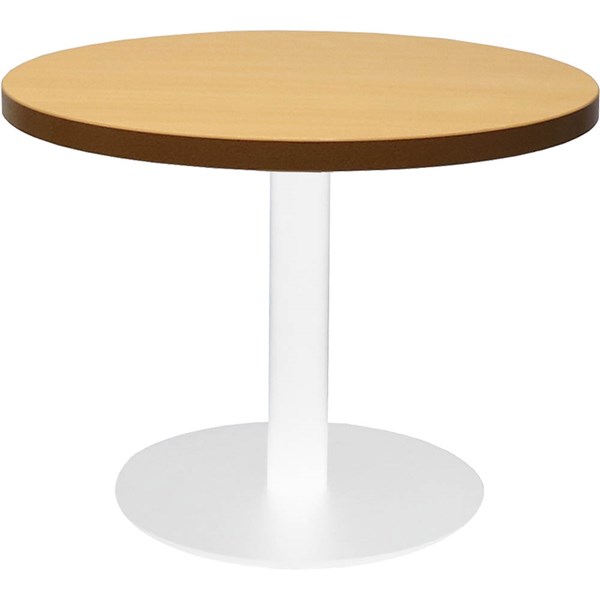 The Rapidline Round coffee table has a 600mm round top with a flat disc base that sits flush to the floor - With a choice of 4 top finishes and 3 base colours