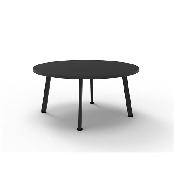 - Eternity Round Coffee Table - Black / Black 900mm Dia x 450mm H 25mm T Black Table Top With Matching Rigid Edge 60mm x 30mm Splayed Leg Underframe In Black P/C E0 Enviroboard Melamine Table Top 2mm Steel Gauge To Leg Set Adjustable leveling Feet 5 Year Warranty