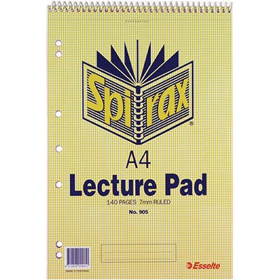 SPIRAX 905 LECTURE BOOK 7MM RULED 7 HOLE PUNCHED TOP OPEN SPIRAL BOUND 140 PAGE A4