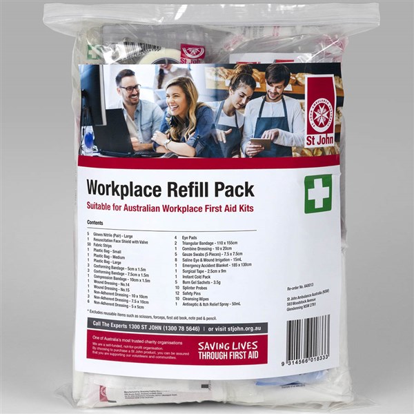 The Workplace Refill Pack comprises of a range of comprehensive first aid components - Complete with items to satisfy all workplace kits such as a wallmount, portable, waistbag and car kits