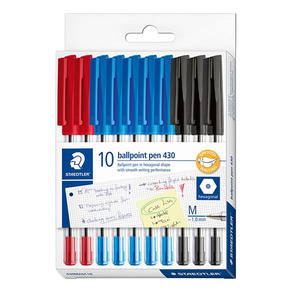 STAEDTLER 430 STICK BALLPOINT PEN MEDIUM ASSORTED PACK 10