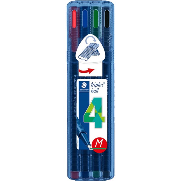 STAEDTLER 437 TRIPLUS BALLPOINT PEN MEDIUM ASSORTED PACK 4