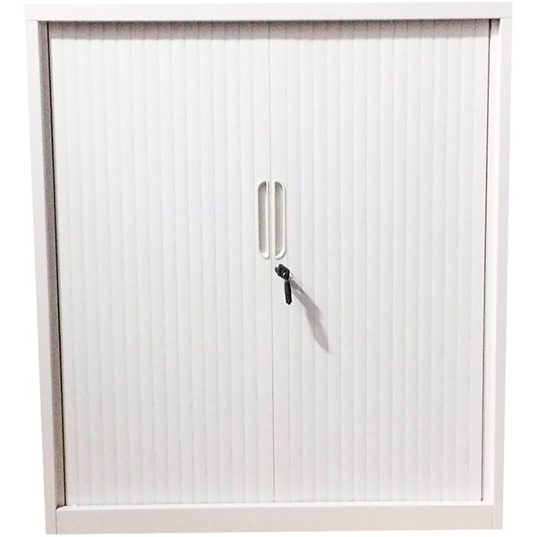 STEELCO TAMBOUR DOOR CABINET 2 SHELVES 1015H X 900W X 463D MM WHITE SATIN