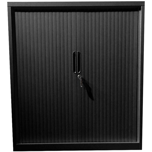 STEELCO TAMBOUR DOOR CABINET 3 SHELVES 1200H X 1200W X 463D MM BLACK SATIN