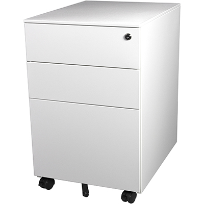 STEELCO TRIMLINE MOBILE PEDESTAL 3-DRAWER LOCKABLE 390 X 500 X 615MM WHITE SATIN