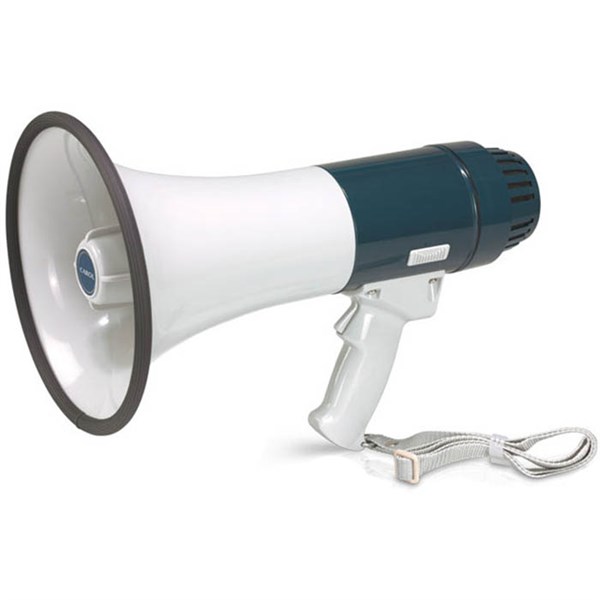 - The high-efficiency megaphone comes with built-in switches to play siren, whistle and foghorn sounds