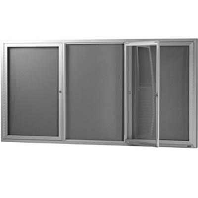VISIONCHART BE NOTICED NOTICE CASE 3 HINGED DOOR 1830 X 1220MM SILVER FRAME GREY BACKING