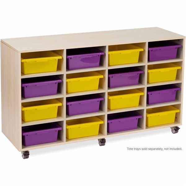 The perfect storage solution for the classroom - Constructed from structural MDF with attractive White Oak wood laminate finish and mounted on lockable castors