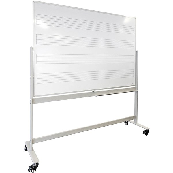 Permanently ruled with 4 music staves - Magnetic surface featuring pivoting double sided board with lines one side and plain whiteboard the other side