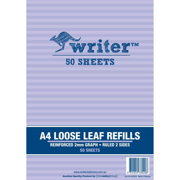 WRITER LOOSE LEAF REFILL REINFORCED 2MM GRID 60GSM A4 50 SHEET