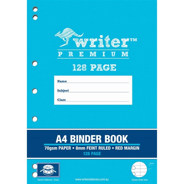 WRITER PREMIUM BINDER BOOK FEINT RULED 8MM 70GSM 128 PAGE A4 DRUMS